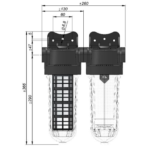 Filtertyp: SL240 DUO-CTN Anschlüsse: ¾ Zoll Durchfluss: 0,5 m³/h bei 0,2 bar ?P Betriebsdruck: 8 bar Max. Druck: 12 bar Max. Betriebstemperatur: 50°C Gewicht: 1.85Kg (2.37 kg mit Verpackung) Verpackung: 320x261x118mm Filterkopf: Glasfaser verstärktes Polypropylen (PP) Filterglocke: StyreneAcrylonitrile(SAN) O’Ring: Nitril Butadien Rubber (NBR) Filterschlüssel: ABS Filterstützkorb: PP + 20% GF Zentrifuge und Abschlussdeckel: Polyethylen (PE) Filtervliese: Polyester (nicht waschbar) oder Nylon (waschbar) Filterfläche + Volumen: 440cm² mit Vliesen + 0.57L mit Aktivkohle CTN-Aktivkohlekartusche: SAN 0.6mm + PP mit 20% GF (Abschlussdeckel) 0.3mm Serienmäßige Ausstattung: Filterfliese 25?m, mit Aktivkohle befüllte CTN-Kartusche, Schlüssel, 2 Wandbefestigungen aus PP + 30% GF Sonstige verfügbare Feinheiten: Nicht waschbar: 1 5 10 25 50 100 ?m Waschbar: 150 300 ?m |