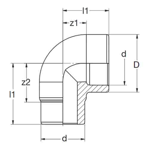 Gespritzte Formteile, für die Heizelement-Muffen-Schweißung, ohne Verschwächungsbeiwerte. Werkstoff PP-RCT (Polypropylen Random-Copolymer Temperature resistant) mit modifizierter Kristallstruktur (beta nukleiert) und erhöhter Temperaturbeständigkeit, Borealis RA7050GN, Farbe RAL 6024 Verkehrsgrün. Das Material entspricht den Anforderungen der aktuellen KTW-Leitlinie des Umwelt-bundesamtes (UBA). Geometrische Eigenschaften Durchmesser und Wanddicke der Muffen entsprechend DIN EN ISO 15874.Toleranzen bei den Z-Maßangaben sind abhängig von der Dimension. Bis d/D 160 = +/- 3 mm. Ab d/D 180 = +/- 10 mm. Betriebsdruck Der Betriebsdruck richtet sich üblicherweise nach dem eingesetzten Rohr. Grundsätzlich sind alle Standard-Formteile für die angebotenen Rohre geeignet. Ausführung Geeignet für Heizelement-Muffen-Schweißung nach DVS Richtlinie 2207. Schweiß- Geräte und Schweiß-Werkzeuge sollten der DVS Richtlinie 2208 entsprechen. Zertifizierung B-R Formteile unterliegen regelmäßigen internen und externen Qualitätskontrollen. Die Formteile erfüllen die Anforderungen der DIN Certco Richtlinie ZP 10.25.1 und NSF14 + 61. |